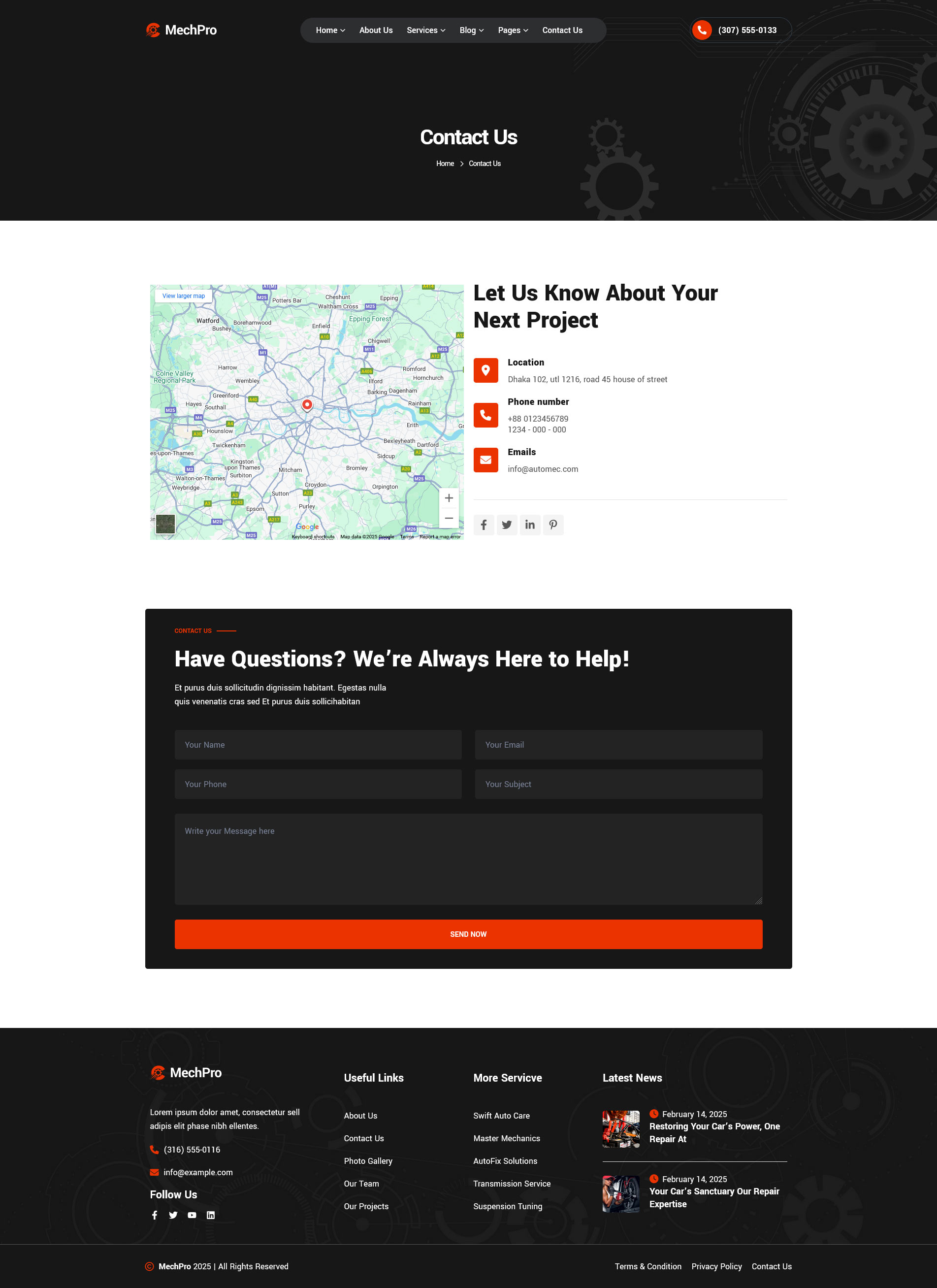 Mechpro is compatible with the most powerful and most popular custom contact forms WordPress widget! create your own forms in seconds!